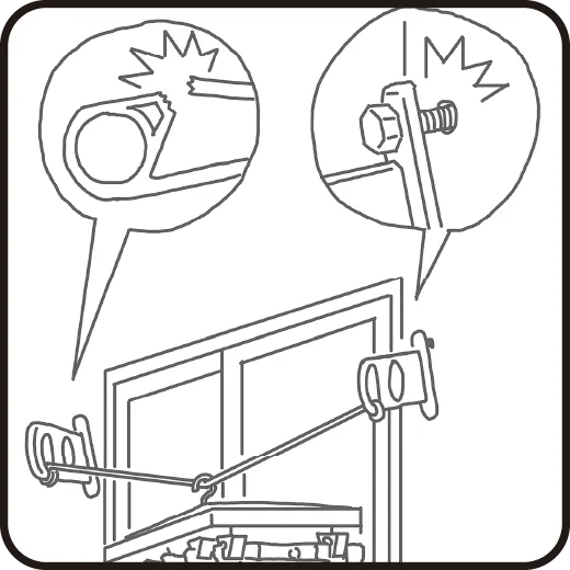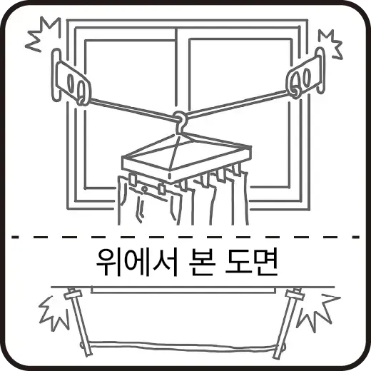 - 빨래 건조봉을 거는 곳에 로프나 끈을 묶어서 사용하면 하중이 가해지며 파손의 원인이 되므로 로프나 끈