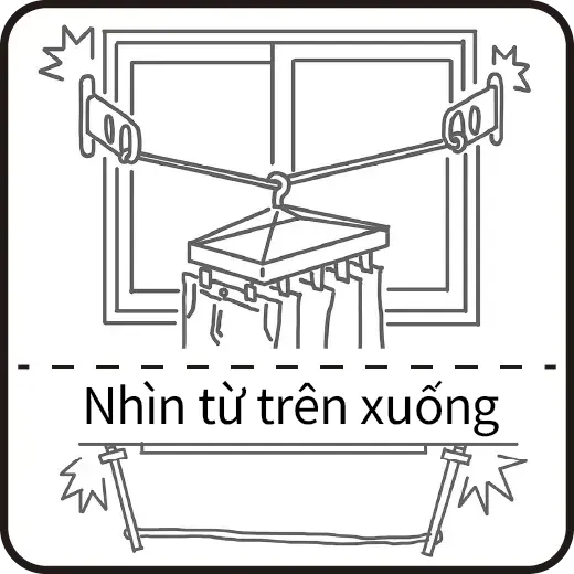 - Nếu bạn treo dây thừng hoặc buộc dây vào phần trụ cứng để phơi quần áo, tải trọng ngang sẽ gây ra hư hỏng hoặc trục trặc. Nghiêm cấm dùng các loại dây để phơi đồ, vui lòng sử dụng thanh phơi đồ