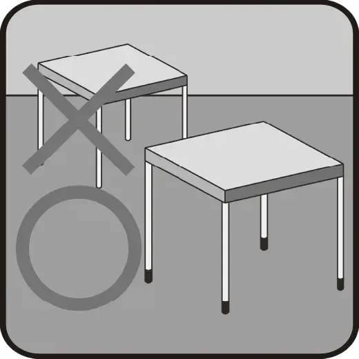- Nếu bạn phải đặt tạm thời 1 vật có cạnh sắc nhọn, vui lòng bảo vệ bằng cách đặt một tấm cao su hoặc vật tương tự giữa các cạnh để bảo vệ.