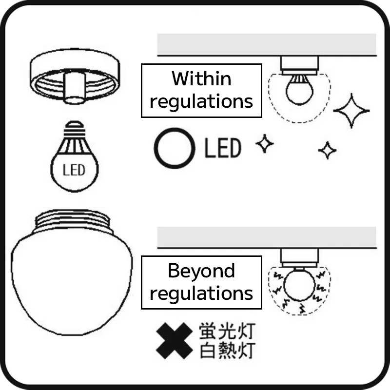 - If you use a bulb that does not match the specifications or shape, the heat may cause the light cover to deform or break, leading to it falling.