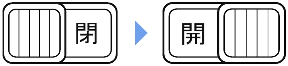 - The ventilation opennings on the upper part of the western style scrolling door can be open by moving the knob left and right to the [Open] 【開】position.