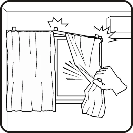 ●Não puxe as cortinas para baixo ou diagonalmente ao fechá-las.