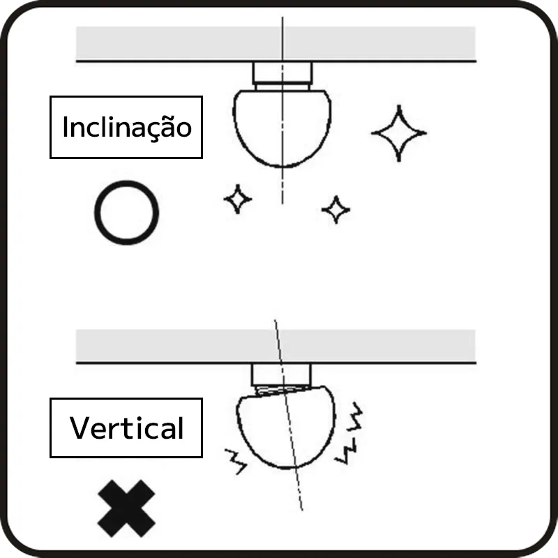 ●Instale a tampa da iluminação verticalmente, sem inclinações.