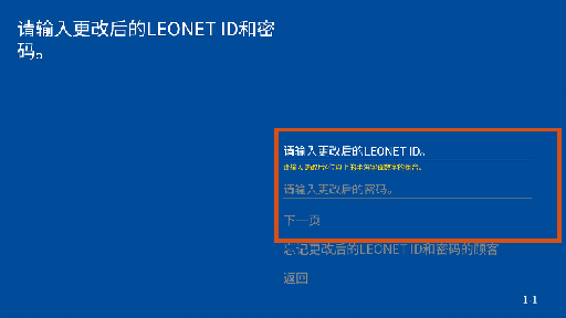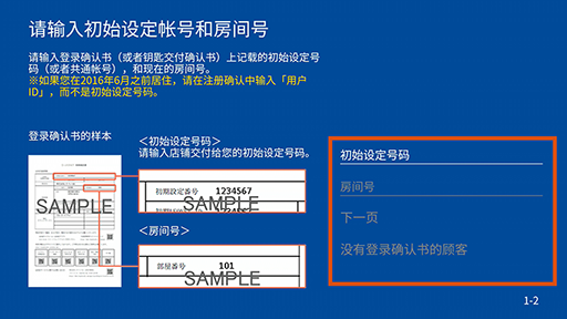 输入LEONET登录确认书记载的 "初始设定号码" 和房间的 "号室"。