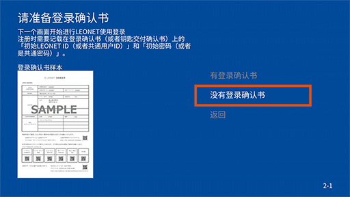 选择 "没有登录确认书"。