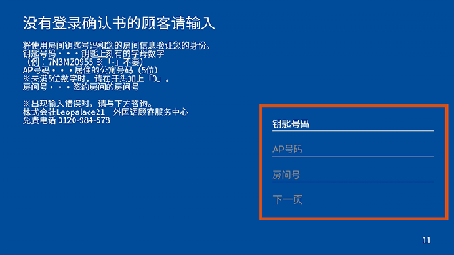 输入 "钥匙号码" "公寓号码" "房间号"。